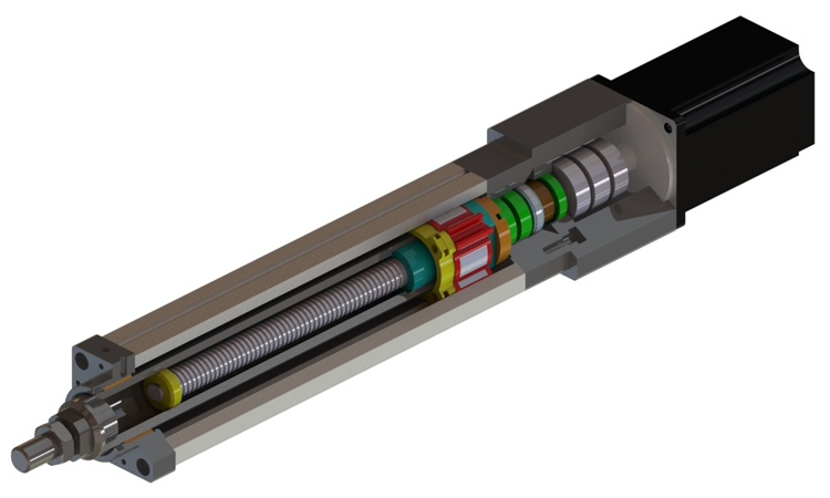 結構:電動缸體與電機在同一行,直列式電動缸集成了伺服電機,伺服電機編碼器,高精度滾珠絲杠或行星滾珠絲杠或梯形絲杠,并采用模塊化設計和其他技術。