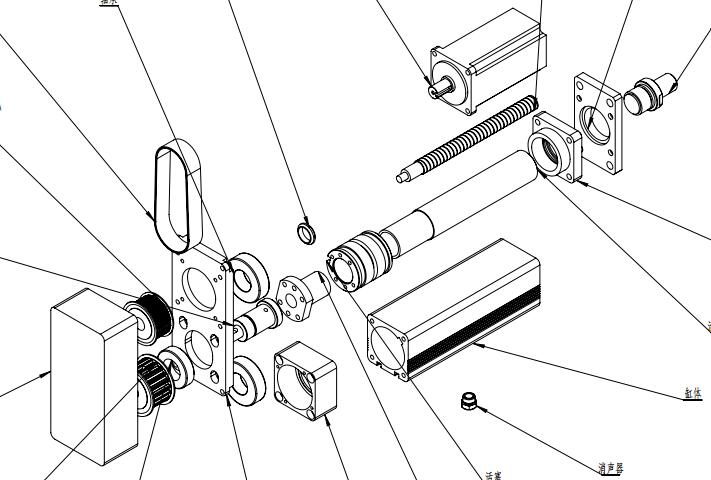 折返式電動缸的結構可以分為:底座、同步輪、開口固定環、電機蓋板、皮帶、軸承、絲桿折返組合件、軸承座、緩沖墊、軸承座、絲桿螺帽、活塞、消聲器、缸體、電機、絲桿、活塞桿、壓蓋板、法蘭板、螺桿。